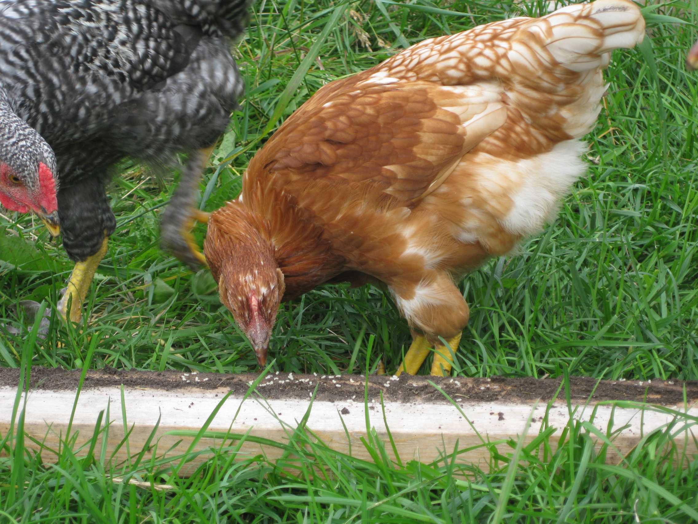 Here is a photo of my chickens eating ant larvae off of a 2X4 that was flipped over for them. They ate all the larvae within a few minutes and provided a stunning display of chicken beak dexterity in doing so. The poor ants were packing up their larvae and hauling off as fast as they could but they didn’t stand a chance. The chickens will be laying any day now. In fact, I think they may be already but I haven’t found their nesting spot yet. And did I mention that Harvey is a rooster? He started crowing a couple weeks ago and confirmed my growing suspicions. He’s the black-and-white one in the photo.