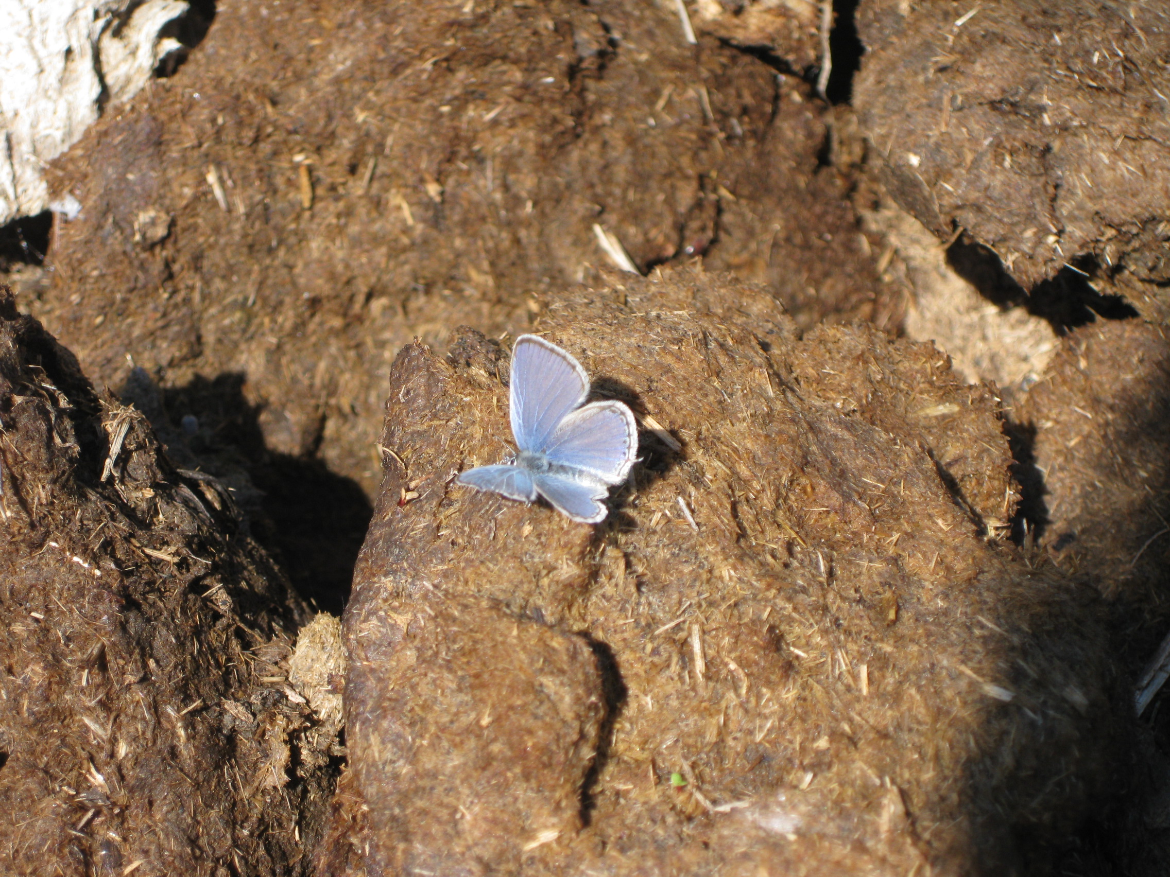 I don’t know if I collected the salamander when I collected the cow pies or if (s)he made it there alone, but the compost pile is now being watered consistently to make sure the salamander, rather than the manure, doesn’t dry out. The western-tailed blues have also been near constant visitors to the cow manure pile as well.